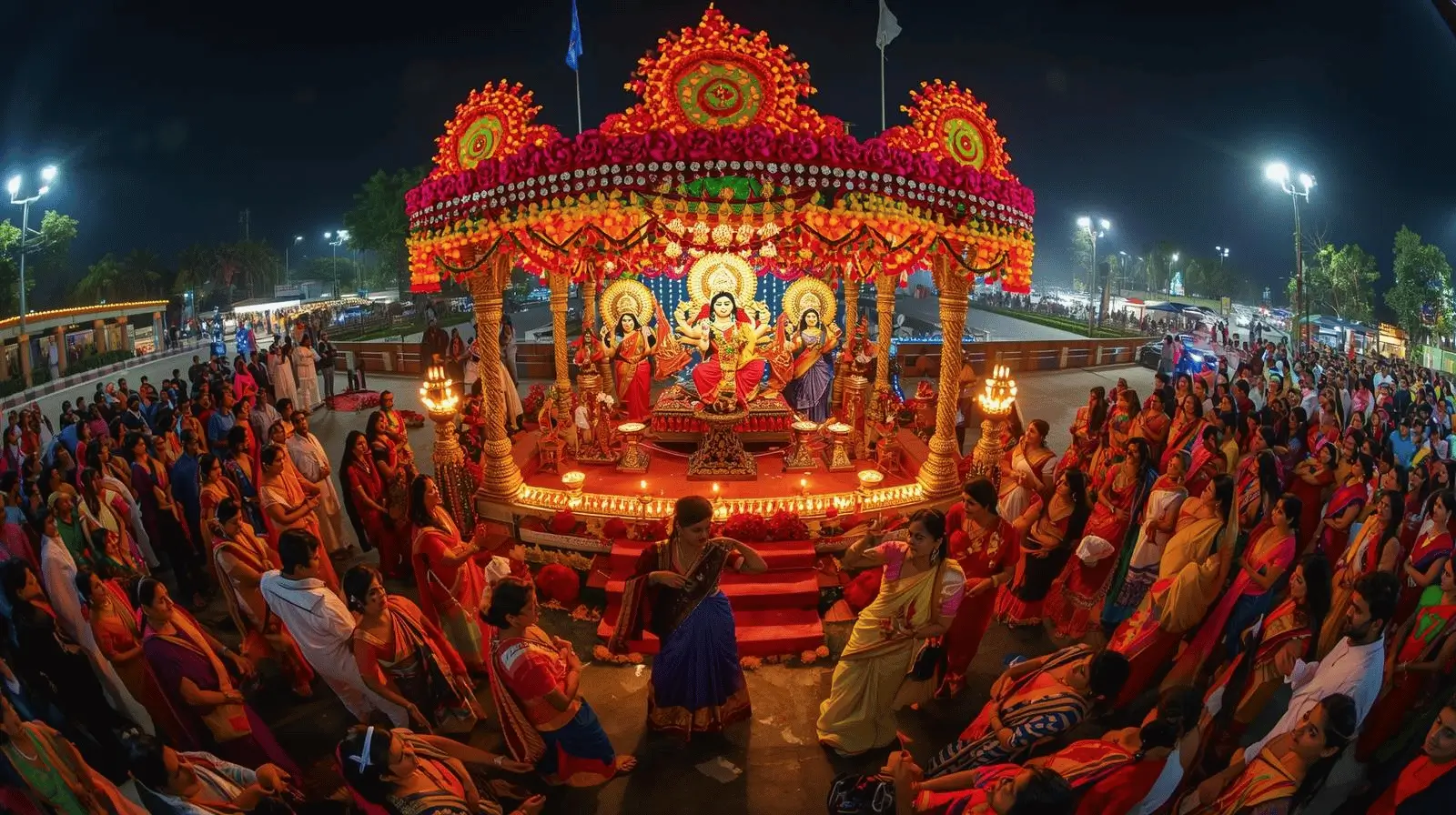 Safety: Follow crowd management instructions, especially at large pandals.